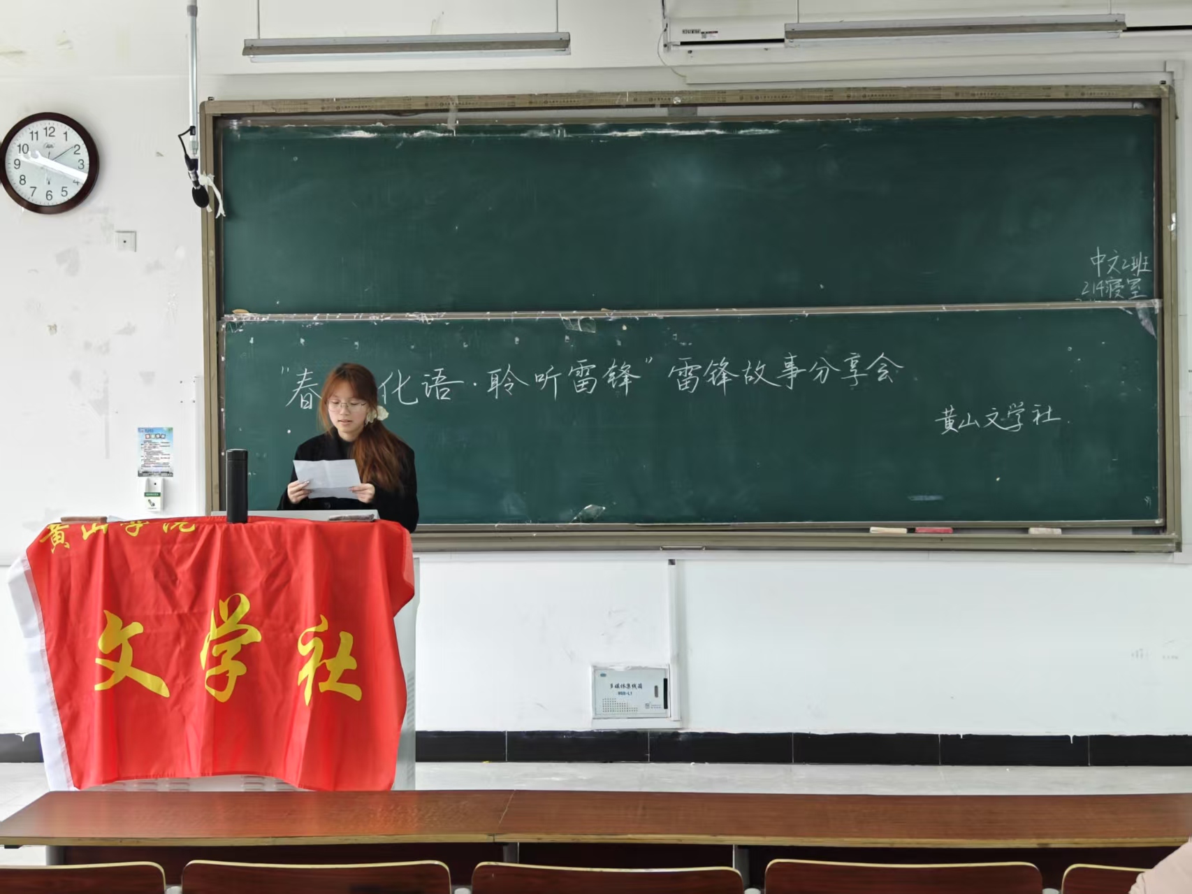 3月16日下午,文学社在文端楼2206教室成功举办了雷锋故事分享会。该会由王绎哲、费媛媛、尹莉莉等人负责维持现场秩序,安排人员签到,引导参与者活动等事项。
